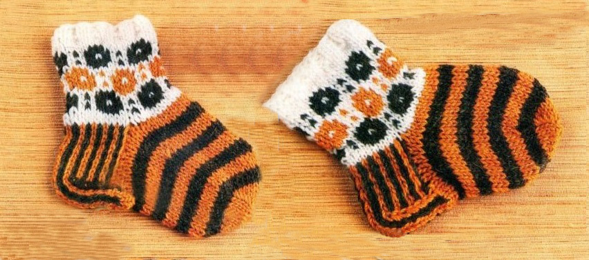 Закончив узор, вяжем еще 2 р. белыми нитками. Если хотите, можно носочки повыше связать. Тогда еще раз узор выполняем.