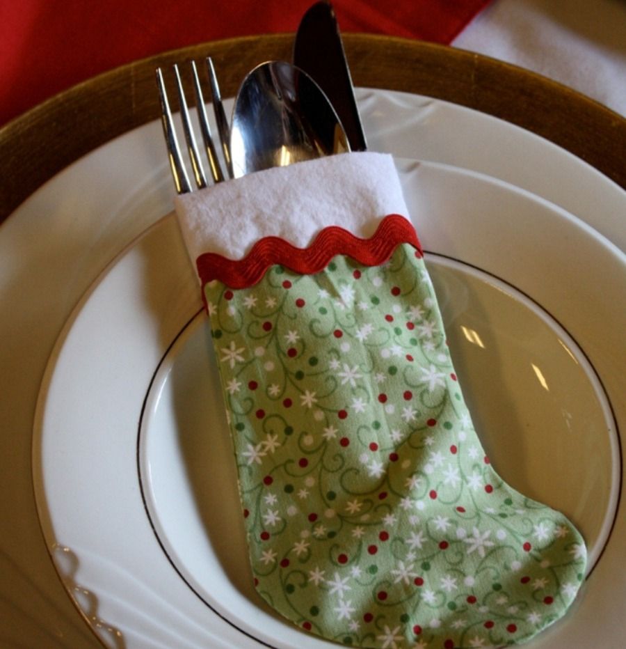 Сервировка новогоднего банкета (иначе это пиршество и не назовёшь ;) ) имеет немаловажное значение для каждой хозяйки, а особенно – если она любит и умеет создавать милые вещицы своими руками. :) Конечно, завернуть столовые приборы можно и в салфетку, но почему бы не сшить для них куверты в форме сапожка? Такое украшение послужит вам долгие годы, каждый раз создавая в доме особую атмосферу праздника и уюта. :)