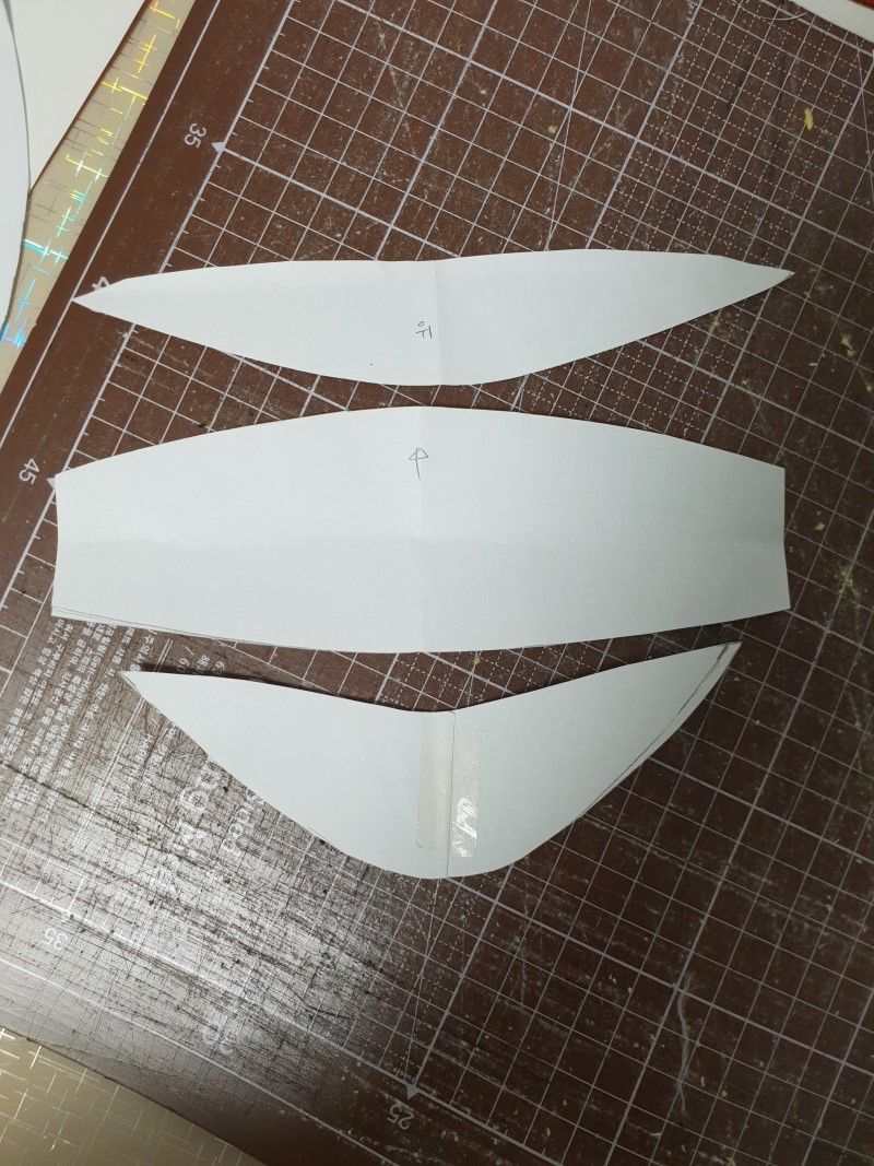 Для одной маски нужно выкроить четыре заготовки (зеркально – 2 + 2). По всем срезам не забудьте добавить по 6-7 мм припусков на швы!