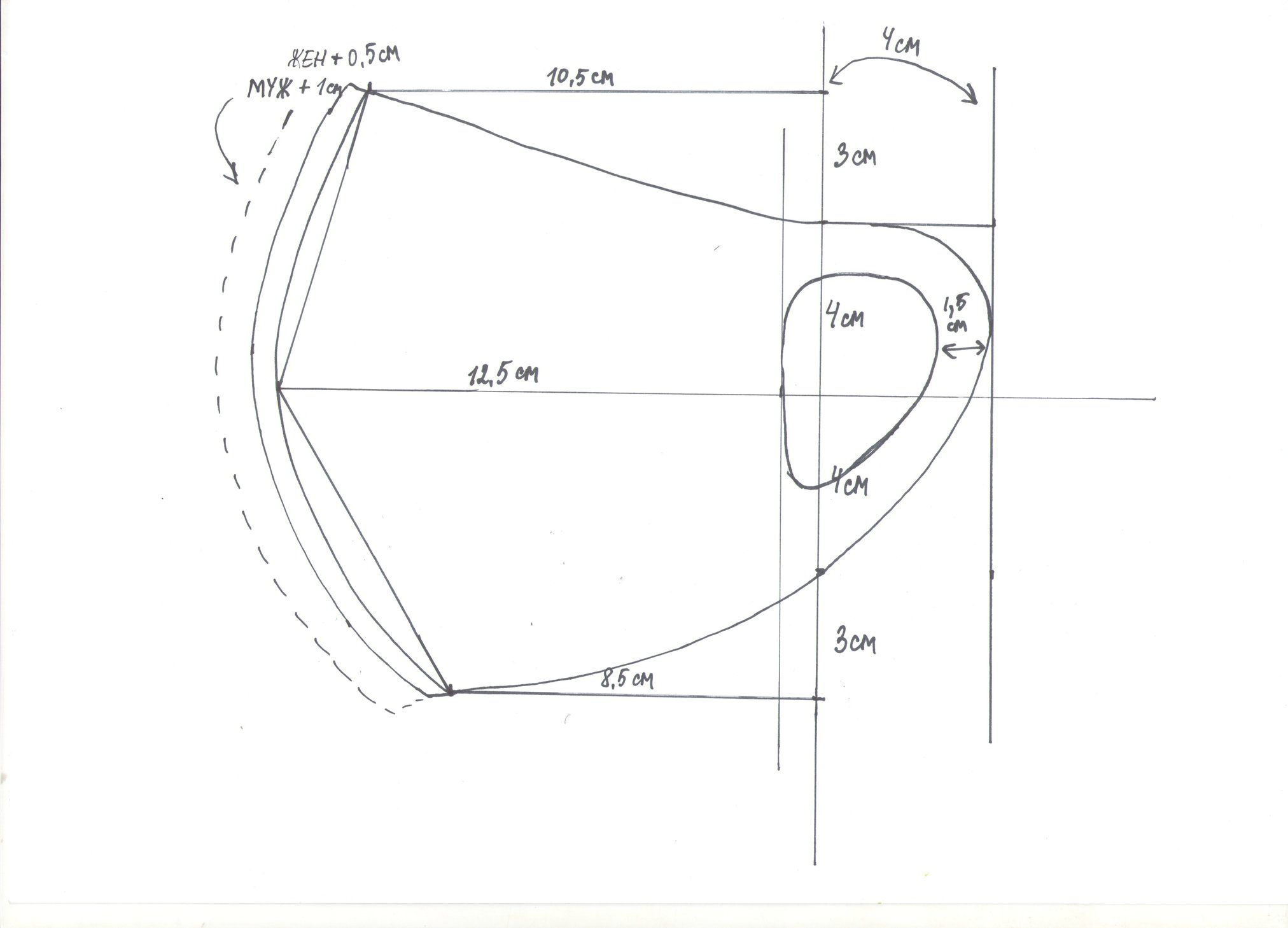 Выкройка по аналогии с вот такой: Мастер-классы - Медицинская маска для лица своими руками: делимся выкройками и проверенными способами изготовления - Шитье - ✂КомоК мастеров рукоделия. Только делаем еще "ушки", как у Вас. :)